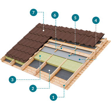 Теплоизоляционный материал (например, минвата), укладываемый между лагами кровельной конструкции
