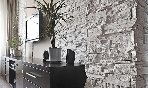 - Камень, плитка. Все эти материалы приветствуются в помещении, ведь они безопасны для здоровья человека. Обычно в интерьере гостиной создаются фрагменты из этих материалов: какая-то одна стена или ее часть.